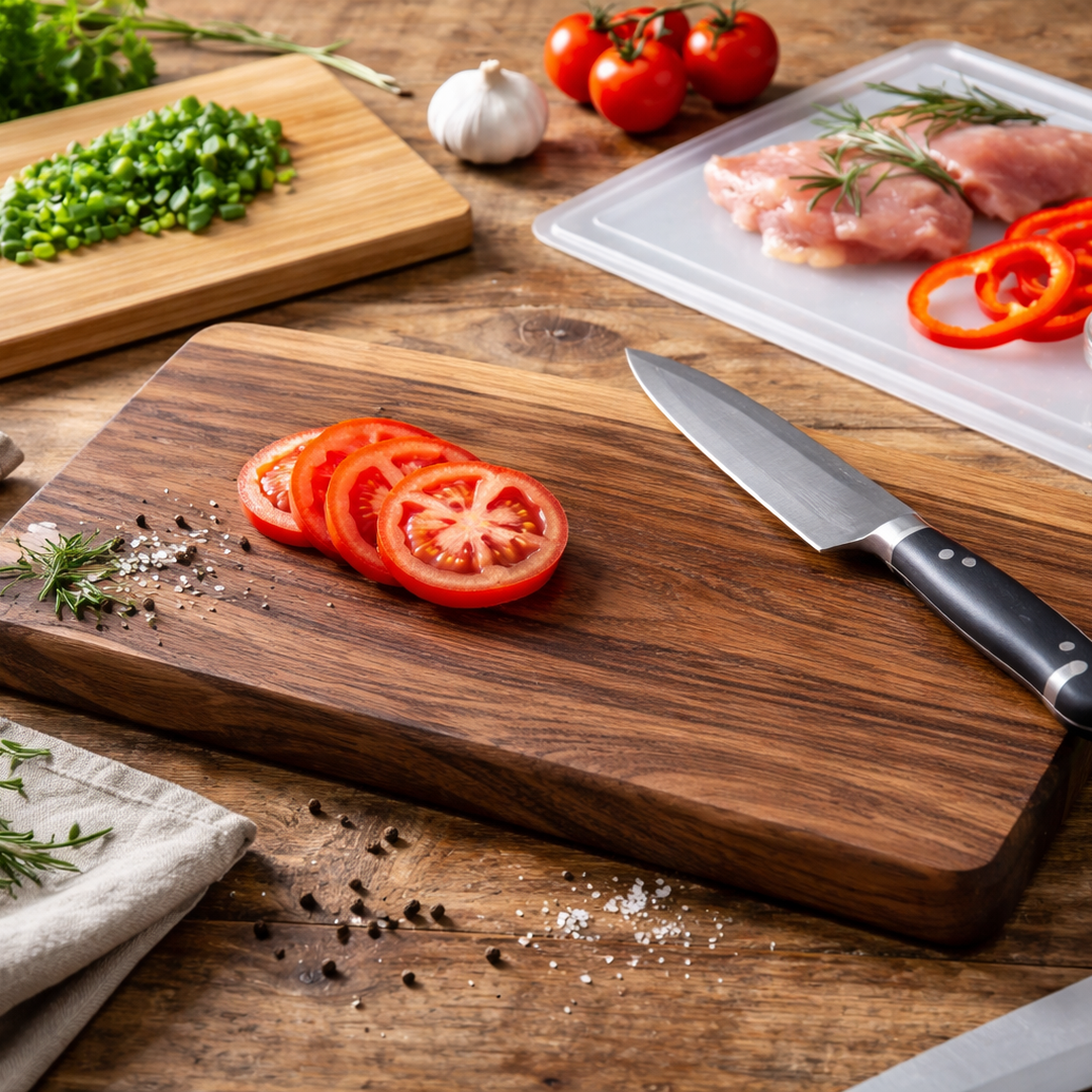 Diferença entre tábua de corte de madeira, bambu, plástico e vidro: qual escolher?