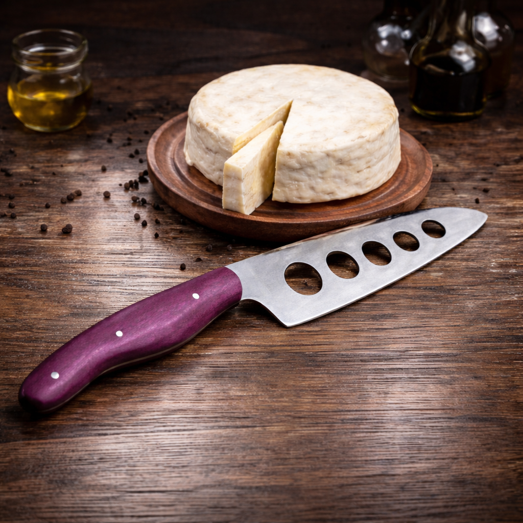 No cabo, utilizamos madeira burl estabilizada com resina. Esse processo aumenta a resistência à umidade e melhora a durabilidade. Além disso, o formato ergonômico oferece firmeza e conforto no manuseio. Como resultado, você executa cortes com mais precisão e segurança.